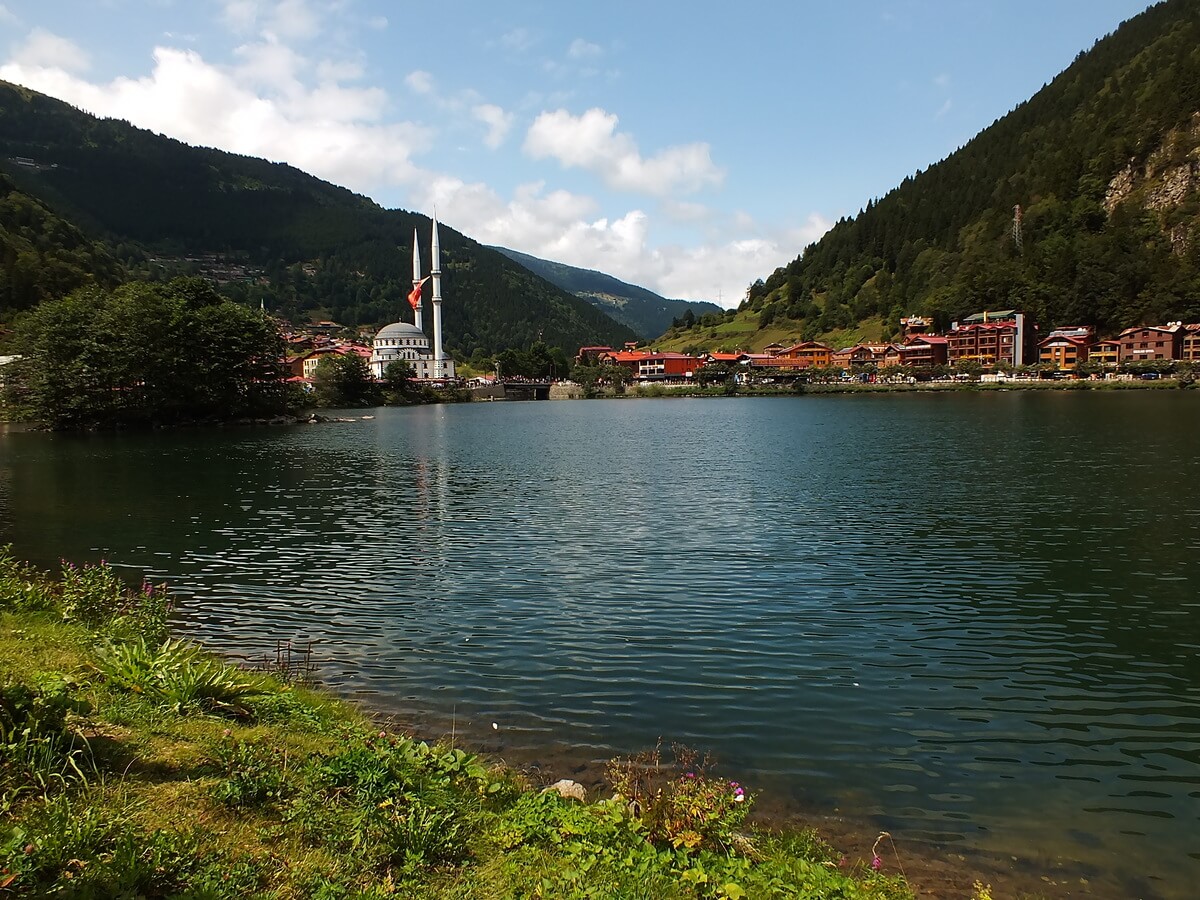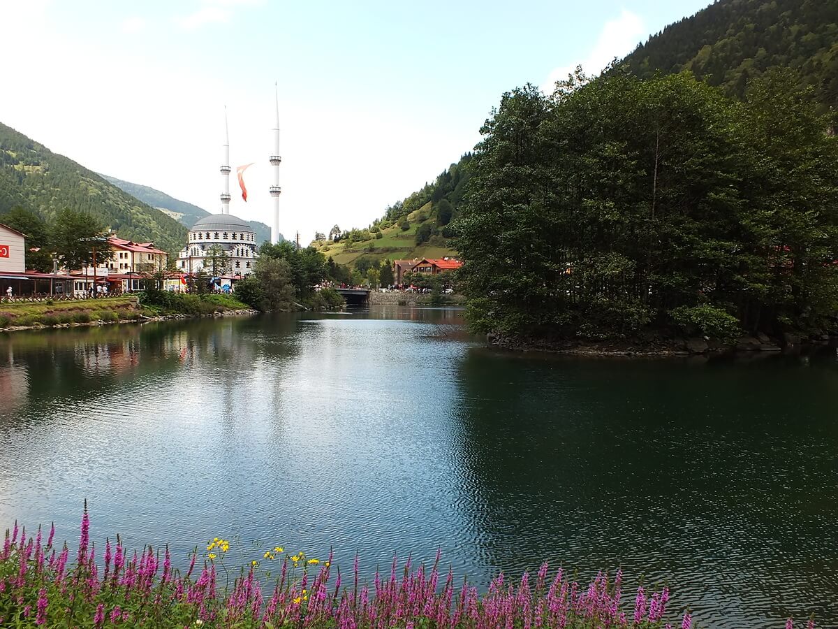 Yaklaşık 7 km sürecek yürüyüşümüze artık başlayabiliriz. İlk durağımız gölün hemen başlangıç noktasında bulunan simge yapı Uzungöl Cami. Renkli çiçekler arasında ne güzel görünüyor değil mi?