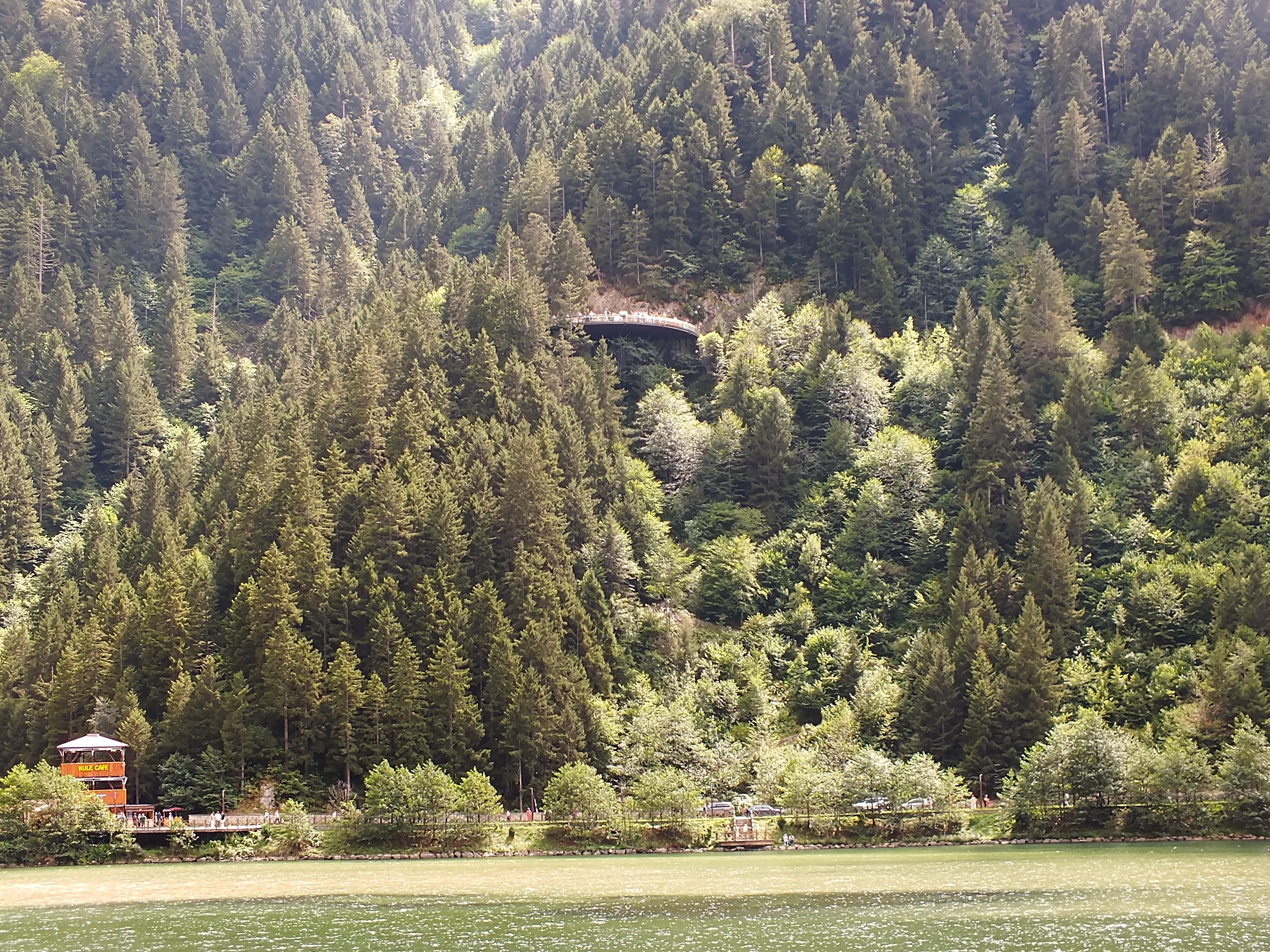 Biraz daha ilerleyince karşınıza Uzungöl Seyir Terası çıkıyor. Terasa çıkış ücretsiz. Ben şahsen zamanım olmasına rağmen çıkmadım çünkü o taraftan çekeceğim fotoğraflar o saat itibariyle güzel çıkmayacaktı. Sizin böyle bir kısıtınız yoksa mutlaka çıkın.