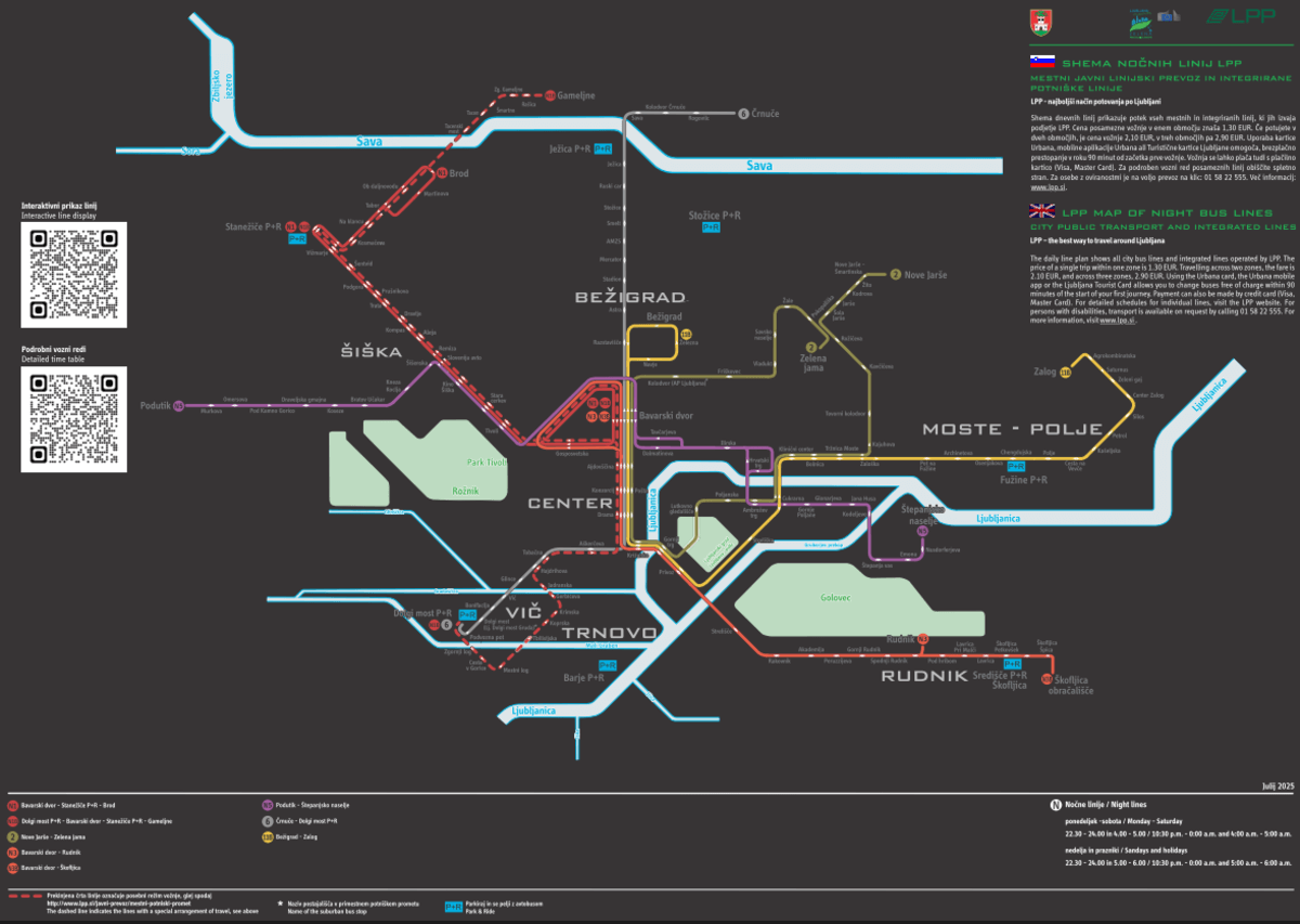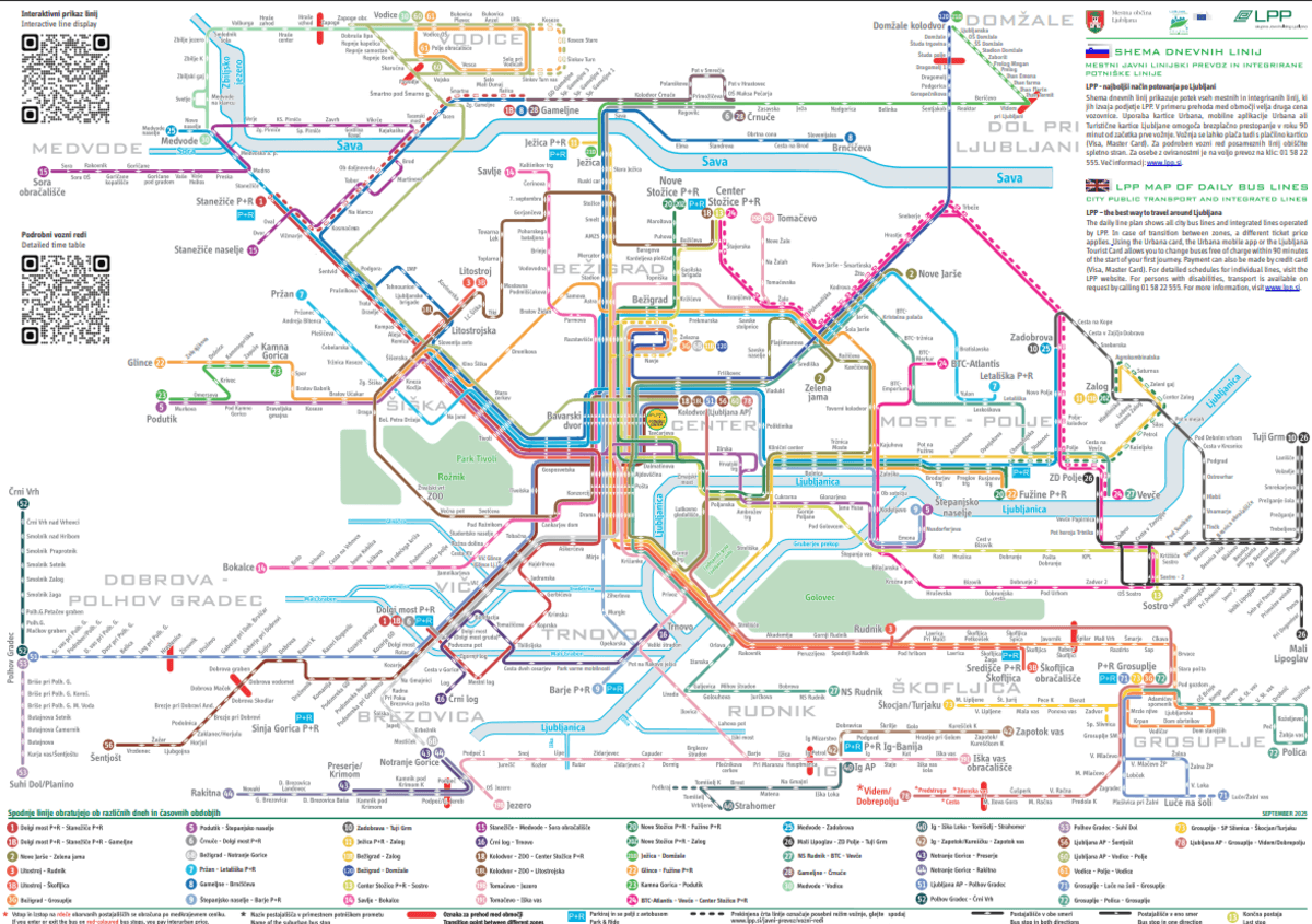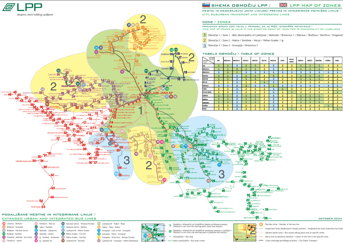 Bölge 1: Tüm şehir alanı (Şehrin tamamı LPP Bölge 1 kapsamında) ve Brezovica ile Podpeč, Škofljica ve Smlednik’e giden yollar.