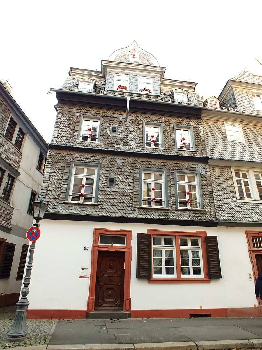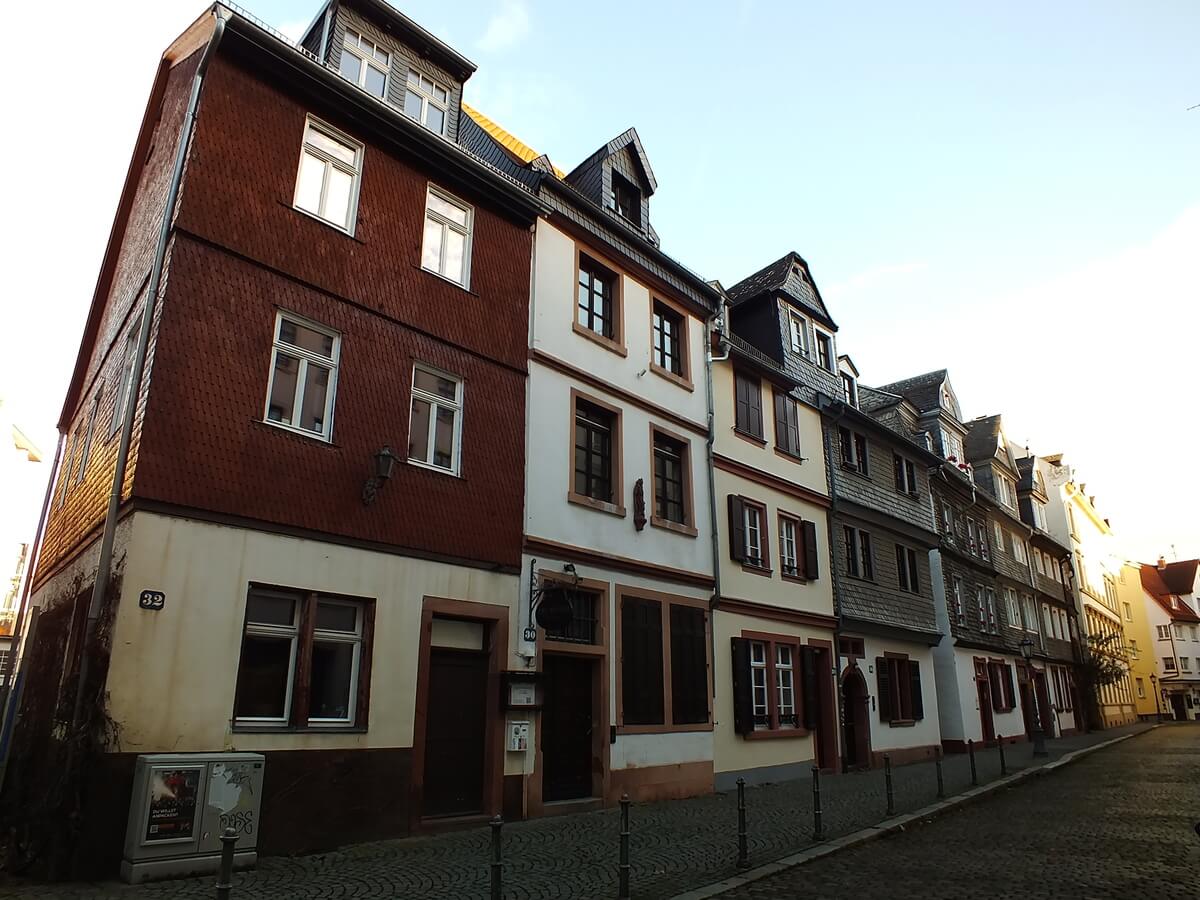 Mainz’ın Kirschgarten’daki yarı ahşap evlerinin en eskisi, 1450’lili yıllarda inşa edilmiş “Haus zum Aschaffenberg” evi.