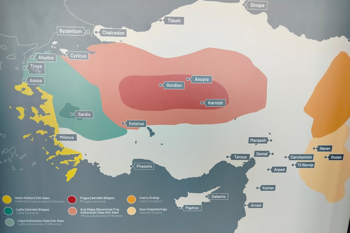 Tunç Çağı sona ererken küçük gruplar halinde Balkanlar’dan ve Trakya’dan Ortabatı Küçük Asya’ya gelen Frigler, Gordion’u başkent olarak kurmuşlar. Kent, MÖ 9-8. yüzyıllarda saraylarıyla zengin bir başkente dönüşmüş. Ünlü kralları, Kral Midas, İlyada yazıya geçerken Frig tahtında oturuyormuş.