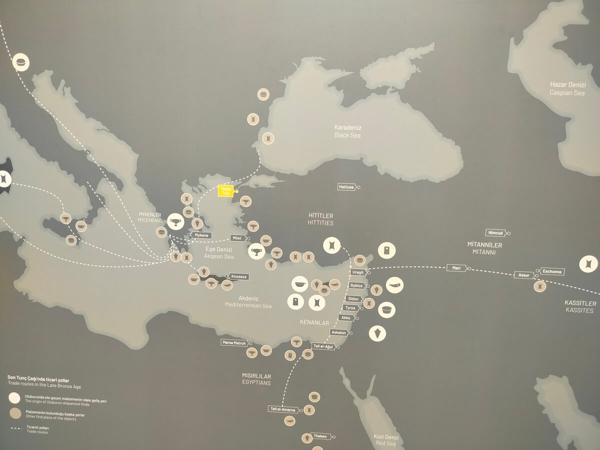 Son Tunç Çağı’nda ticaret gemilerinin seren direğine asılı tek yelkeni varmış. Denizcilik büyük olasılıkla hava şartlarının iyi olduğu sıcak mevsimlerle sınırlıymış. Bu dönemde ticaret Ege ve Doğu Akdeniz’de hüküm süren saraylar arası yapılan bir faaliyetmiş.
