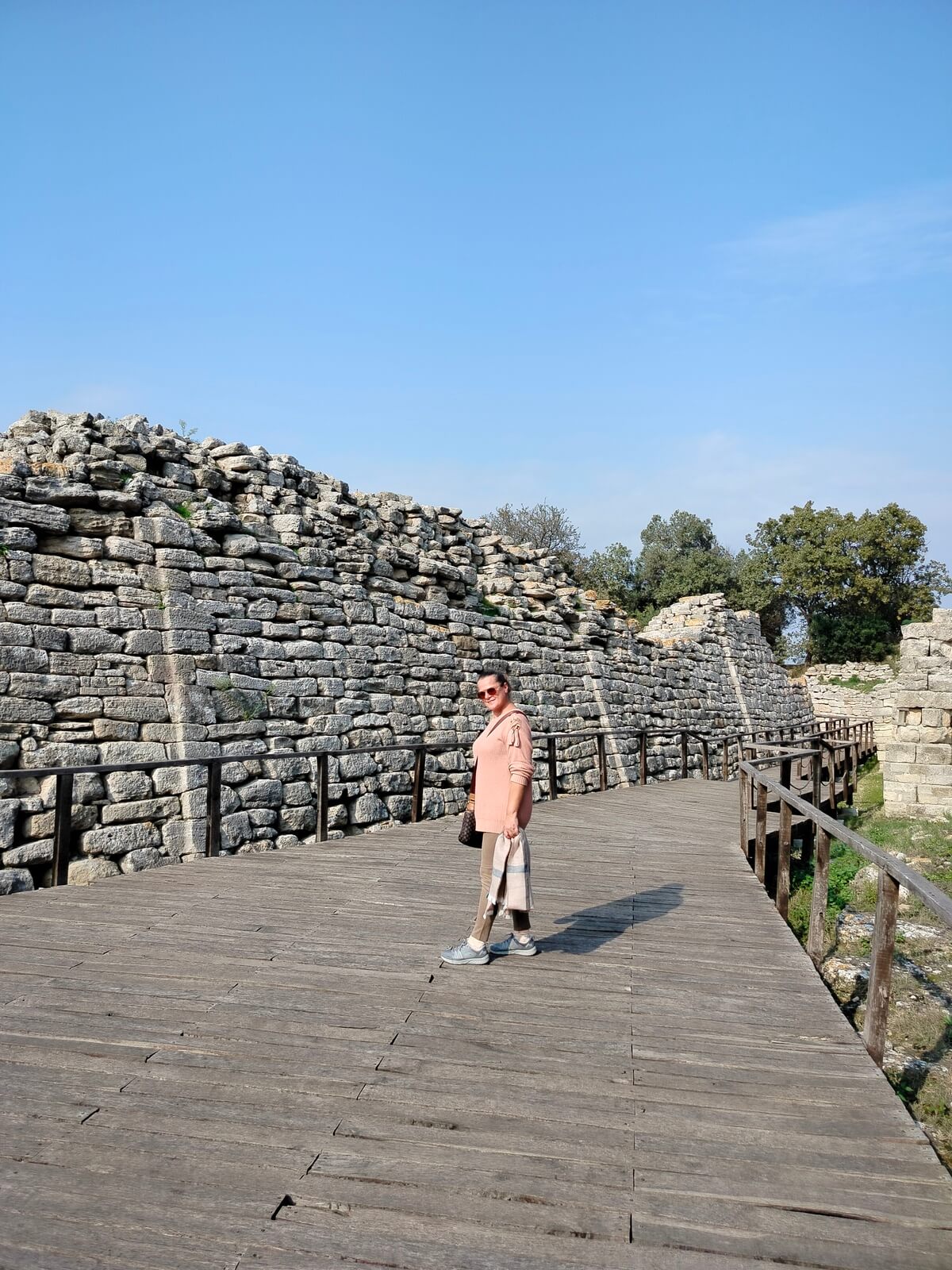 Tamamı 550 metre olan Troya VI surunun sadece 330 metrelik bölümü günümüze ulaşmış. Önünüzdeki Troya VI surunun yapı tekniğindeki özeni ve kireç taşı bloklarının ne denli temiz çalışılmış olduğunu görebiliyorsunuz. Duvar dikey girintilerle testere dişi biçiminde örülmüş.