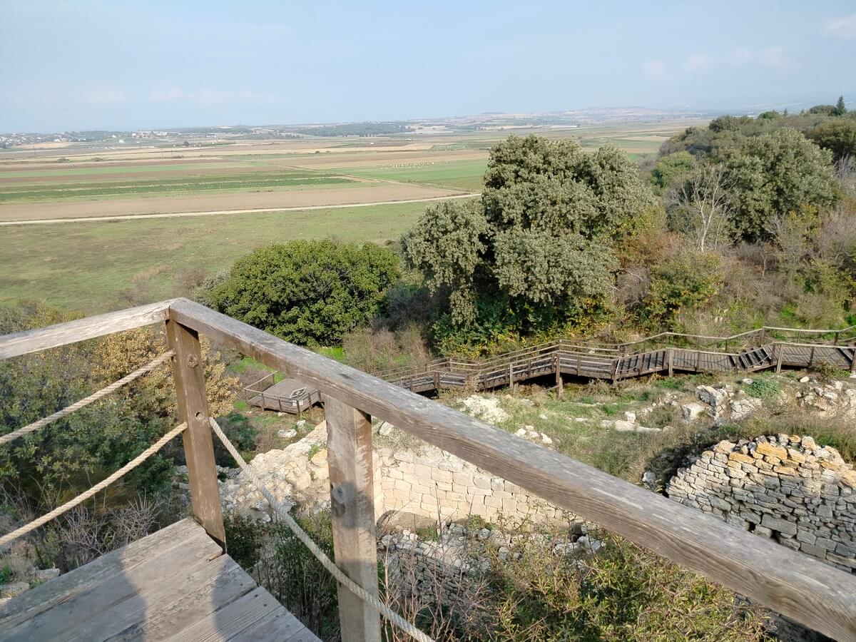 Arkanızda ise Grek-Roma Çağı İlionu’nun aşağı kenti uzanıyor. Kuzeyde Çanakkale Boğazı görülmekte, Kara Menderes (antik çağda Skamander) Ovası ise batıya doğru uzanmakta.