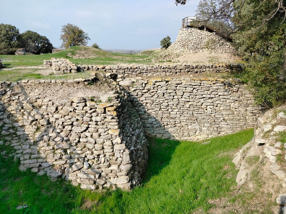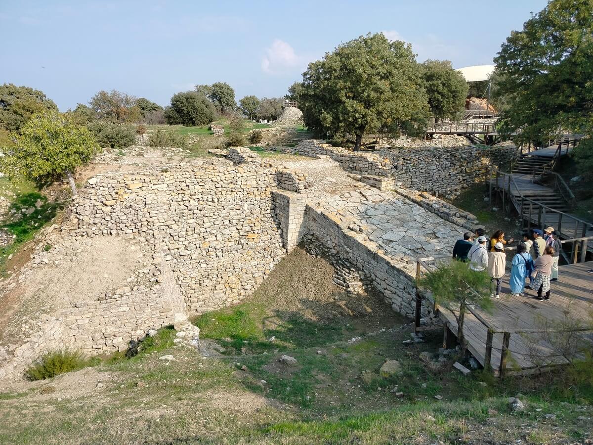 Burada Troya I erken ve orta dönemine ait savunma duvarının bir bölümü ile bu dönemdeki güney girişinin arkasındaki kule biçimindeki çıkıntıyı görebilirsiniz.