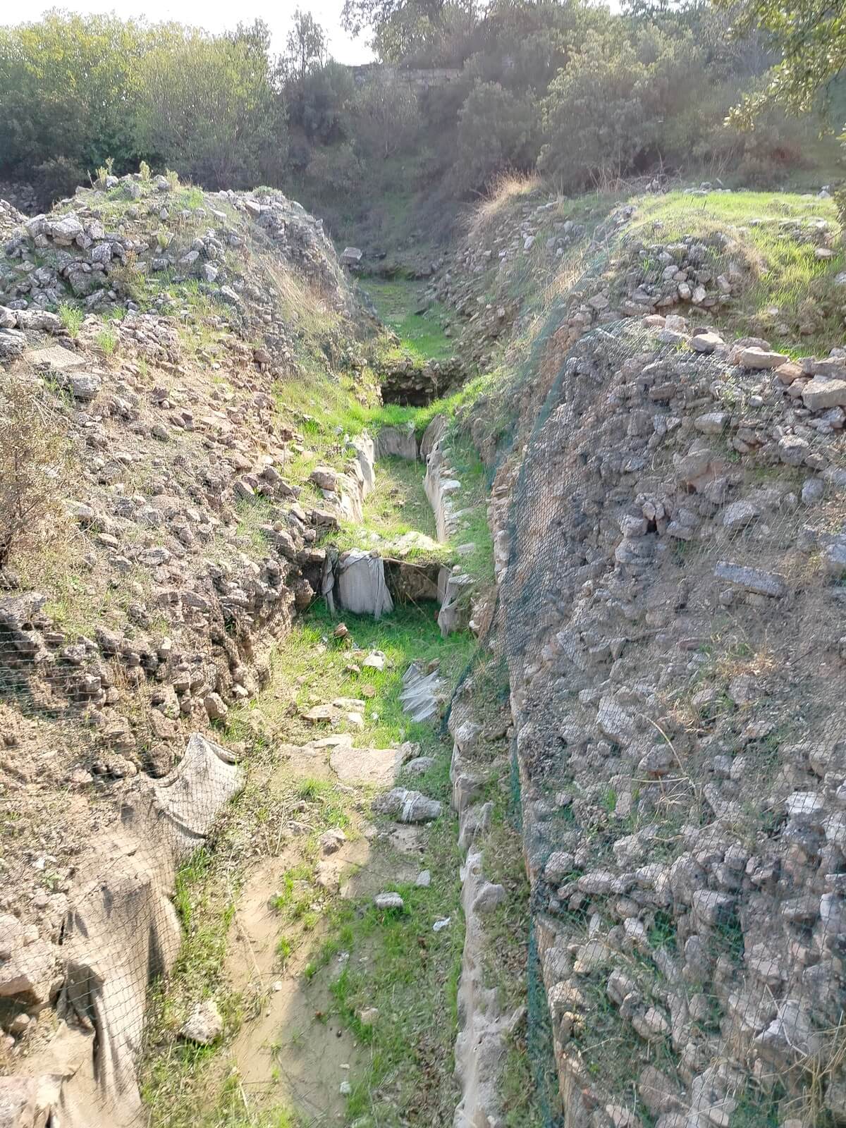 Yarmanın tabanında, gördüğünüz Troia I’in erken evrelerine ait (yakalaşık MÖ. 2920) duvar kalıntıları bulunmuş.