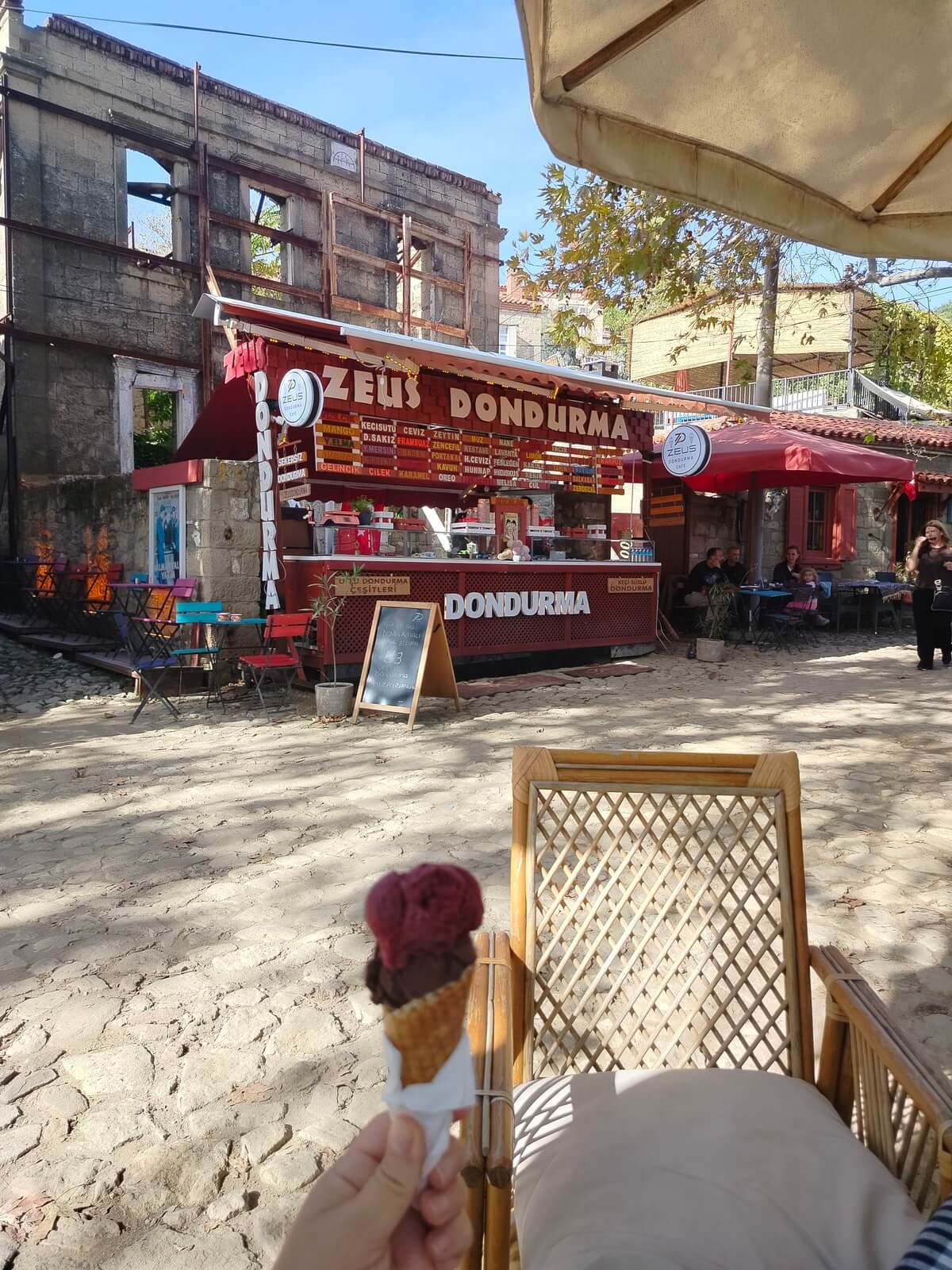 Köyde mutlaka yapmanız gerekenlerden biri de kesinlikle köyün sokaklarında da rastlayabileceğiniz keçilerin sütünden yapılmış o harika dondurmalardan yemek. Buradaki dükkanlarda 60-70 çeşit dondurma satılıyor. Keyfini çıkarmak için mutlaka sevdiğiniz bir çeşit vardır.